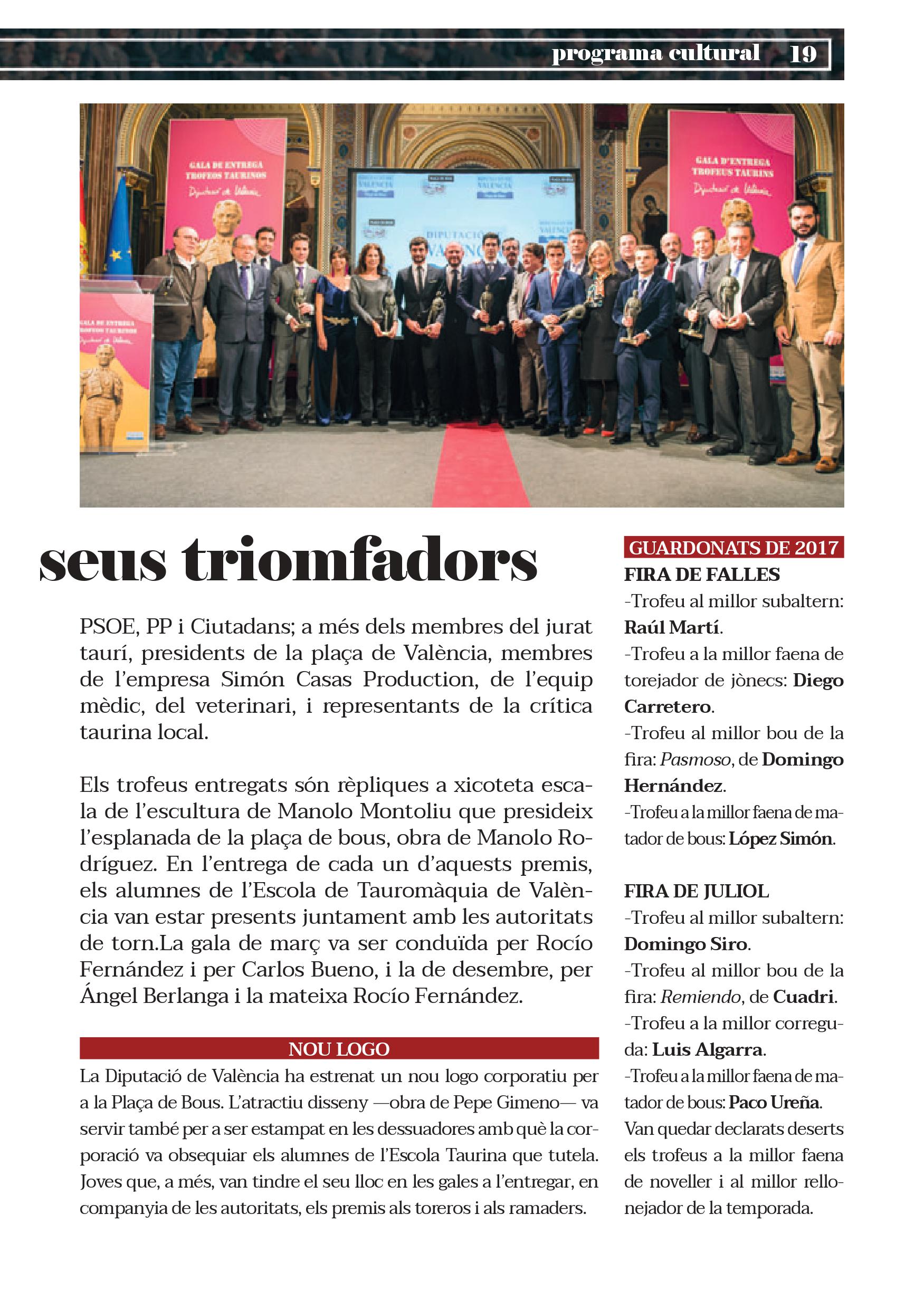 Altres dels esdeveniments serà la despedida de Juan José Padilla, que en la temporada de 2018 farà una gira per dir adéu a les arenes, coincidint amb el 25 aniversari de la seua alternativa.