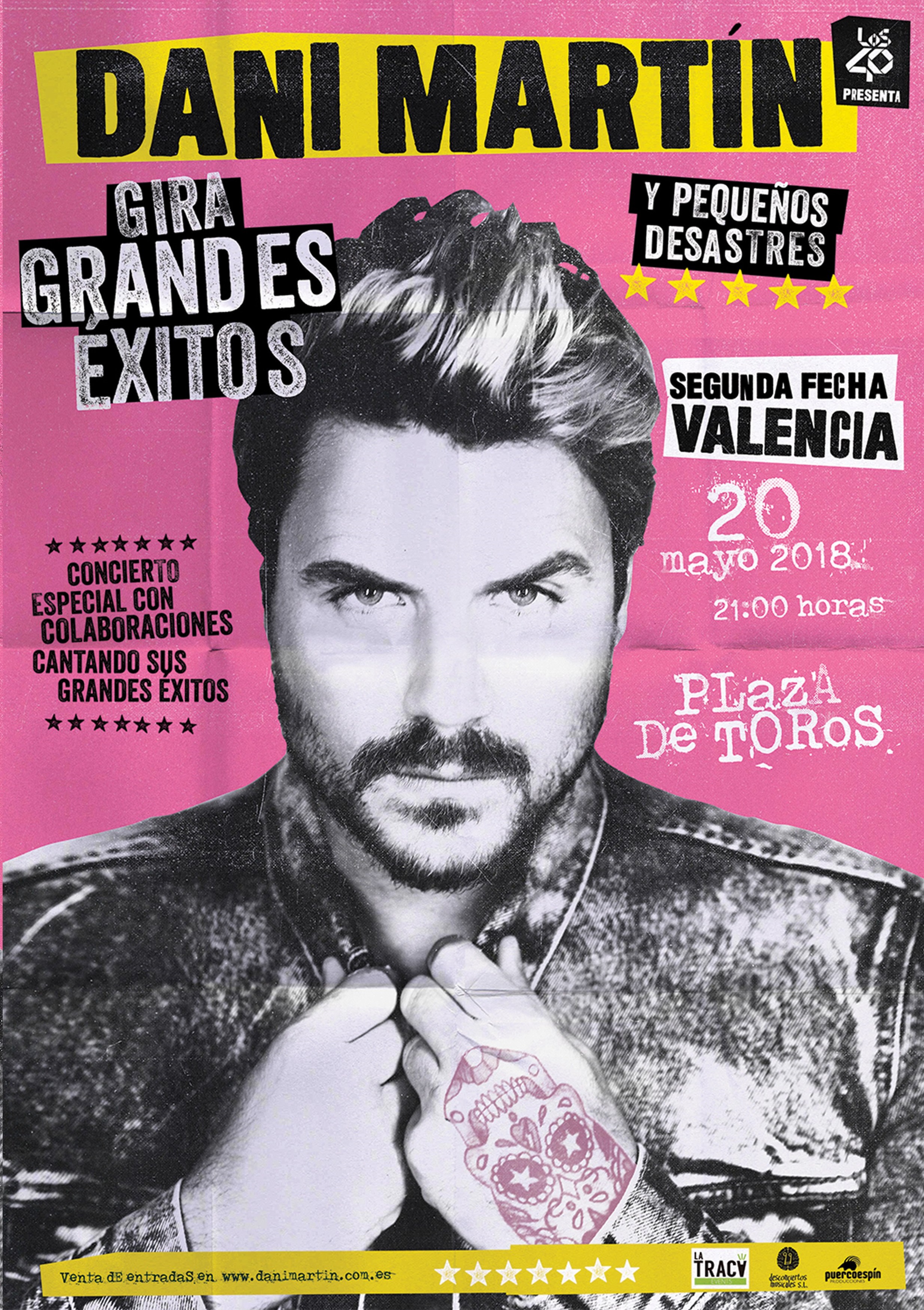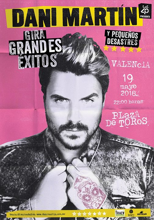 La gira "Grandes éxitos y pequeños desastres" de Dani Martín, uno de los cantantes de referencia en la escena musical española, llegará a Valencia en mayo de 2018, concretamente los días 19 y 20. La segunda fecha se anuncia en su web (http://www.danimartin.com.es/), bajo el nombre "Decir amigo". Y es que esta actuación destacará por las colaboraciones.
