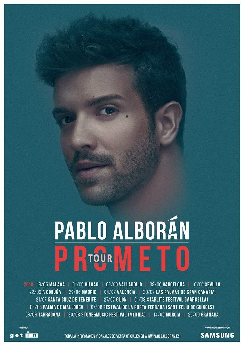 Pablo Alborán presentará en la Plaza de Toros de Valencia su cuarto disco de estudio, Prometo, el 4 y el 5 de julio. El viernes 1 de diciembre, a las 10 horas, se pondrán a la venta las entradas para las primeras fechas confirmadas del Tour Prometo en España en una preventa exclusiva en pabloalboran.es, y, a partir del 4 de diciembre, se podrán adquirir en los puntos de venta oficiales.