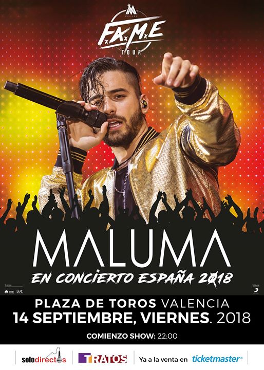 Maluma traerá su tour "F.A.M.E" a Valencia en septiembre. Una gira que arrancaba el 23 de marzo en Washington, DC y que se presentará en más de 21 ciudades a través de todo Estados Unidos, incluyendo el American Airlines Arena, en Miami; Madison Square Garden, en Nueva York; y the Forum, en Los Ángeles.