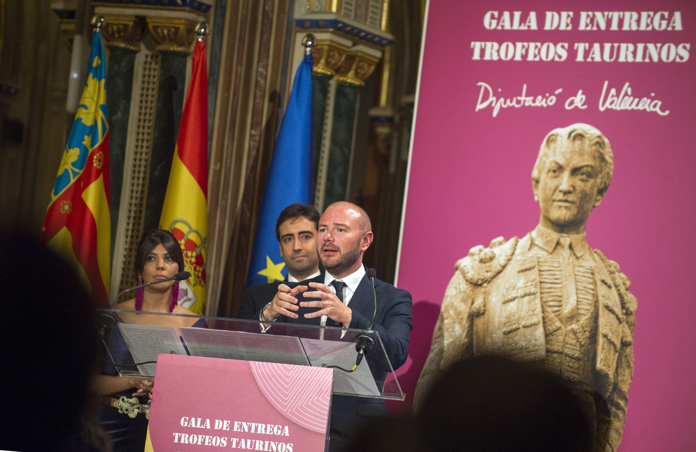 El acto de entrega de los premios taurinos, otorgados por la Diputación de Valencia, a los triunfadores de las ferias de Fallas y Julio del año 2016 tuvo lugar el pasado 10 de marzo en el Centro Cultural La Beneficencia. A la gala, que fue presentada por Carlos Bueno y Rocío Fernández, asistieron, entre otros, el subdelegado del Gobierno en Valencia, José Vicente Herrera; el Director General de la Agencia de Seguridad y Respuesta a las Emergencias, José María Ángel; y el diputado de Asuntos Taurinos de la institución provincial, Toni Gaspar.